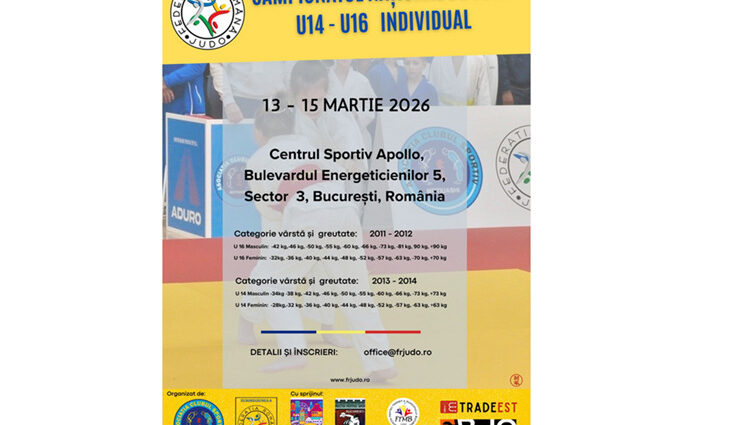 Federația Română de Judo, în parteneriat cu ACS Motiuashi, anunță organizarea Campionatelor Naționale de Judo pentru categoriile U14 și U16, eveniment ce se va desfășura în perioada 13-15 martie 2026, la Centrul Sportiv Apollo (Str. Energeticienilor nr. 5, Sector 3).